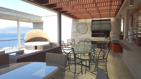 Teodoro Fernández, Premio Nacional de Arquitectura, diseñó el año 2011 esta casa en el sector de Punta Pite como un encargo muy específico, construir casas independientes para dos familias con increíbles lugares comunes para reunirse. En un lote de 10.000 m2 en orilla de mar, orientación norte, protegido del viento sur, se encuentra esta espectacular propiedad de exquisito diseño, finas terminaciones y excelente mantención. Distribuida en dos amplias casas completamente amobladas en las dos alas opuestas, que se unen en una gran nave central con enormes espacios comunes de esparcimiento, como terrazas, quinchos, spa, gimnasio y piscina indoor y outdoor temperada. En el sector superior del terreno hay un edificio de 5 departamentos para invitados completamente equipados. Jardín consolidado con paisajismo, amplio lugar de estacionamiento y acceso controlado.